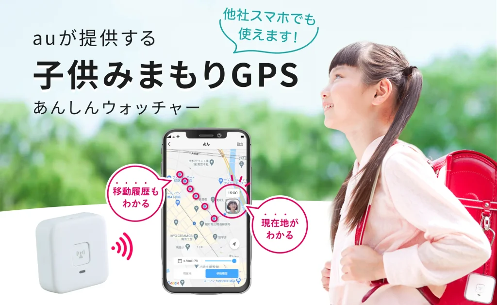 あんしんウォッチャーは、大手通信会社のauが提供している、子ども向け見守りGPSサービスです。